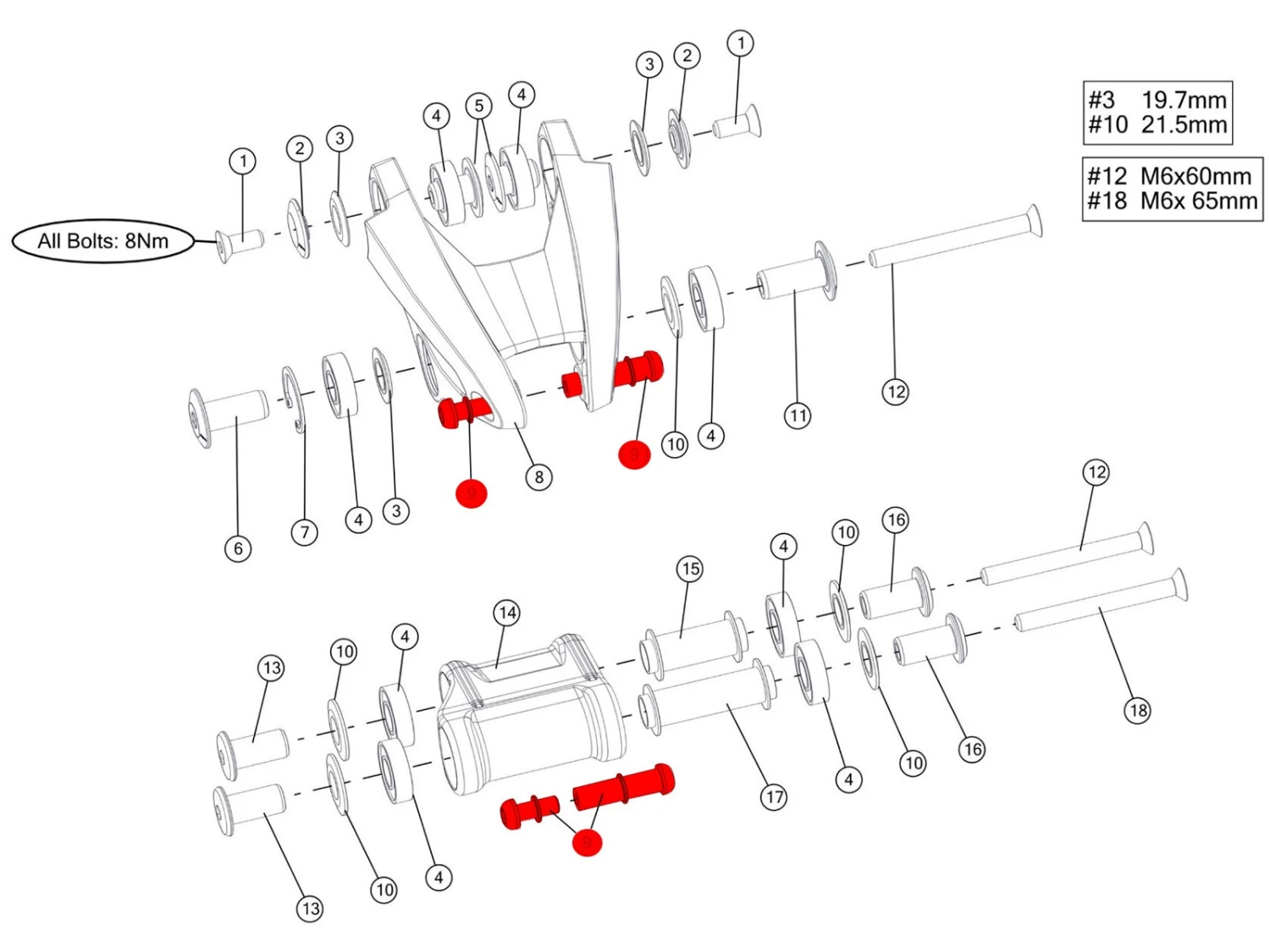 BMC Rear Shock Bolt Set pour Speedfox et Trailfox